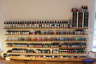 Once the jars were up, I realized they could also help me easily see my wood mounted stamps, distress stains, inks and reinkers, too!